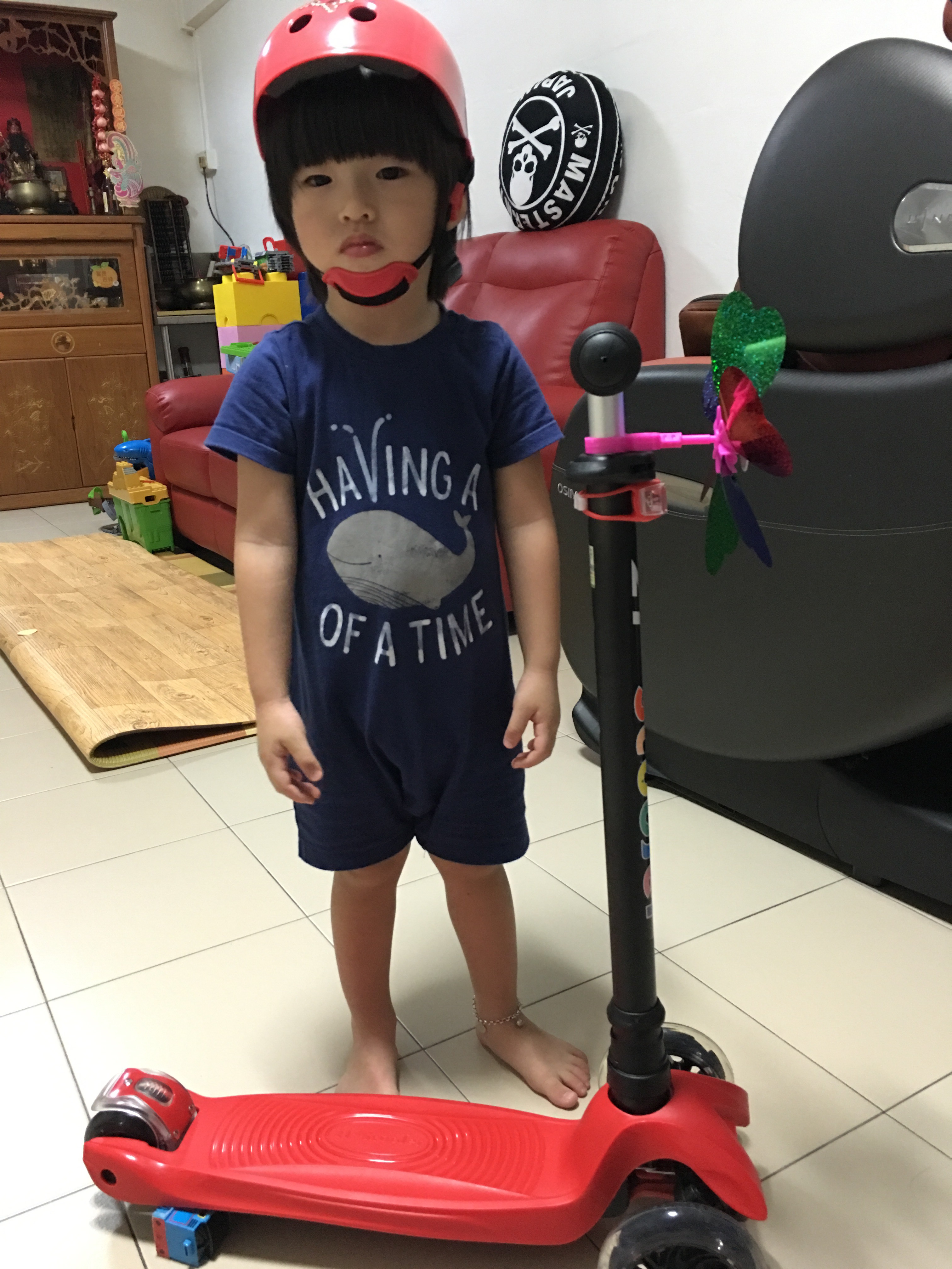 I got my own scooter! Posted on July 16, 2016 by jamykor 0 I got my own scooter, but the helmet makes me look so silly. I don’t like wearing the helmet.